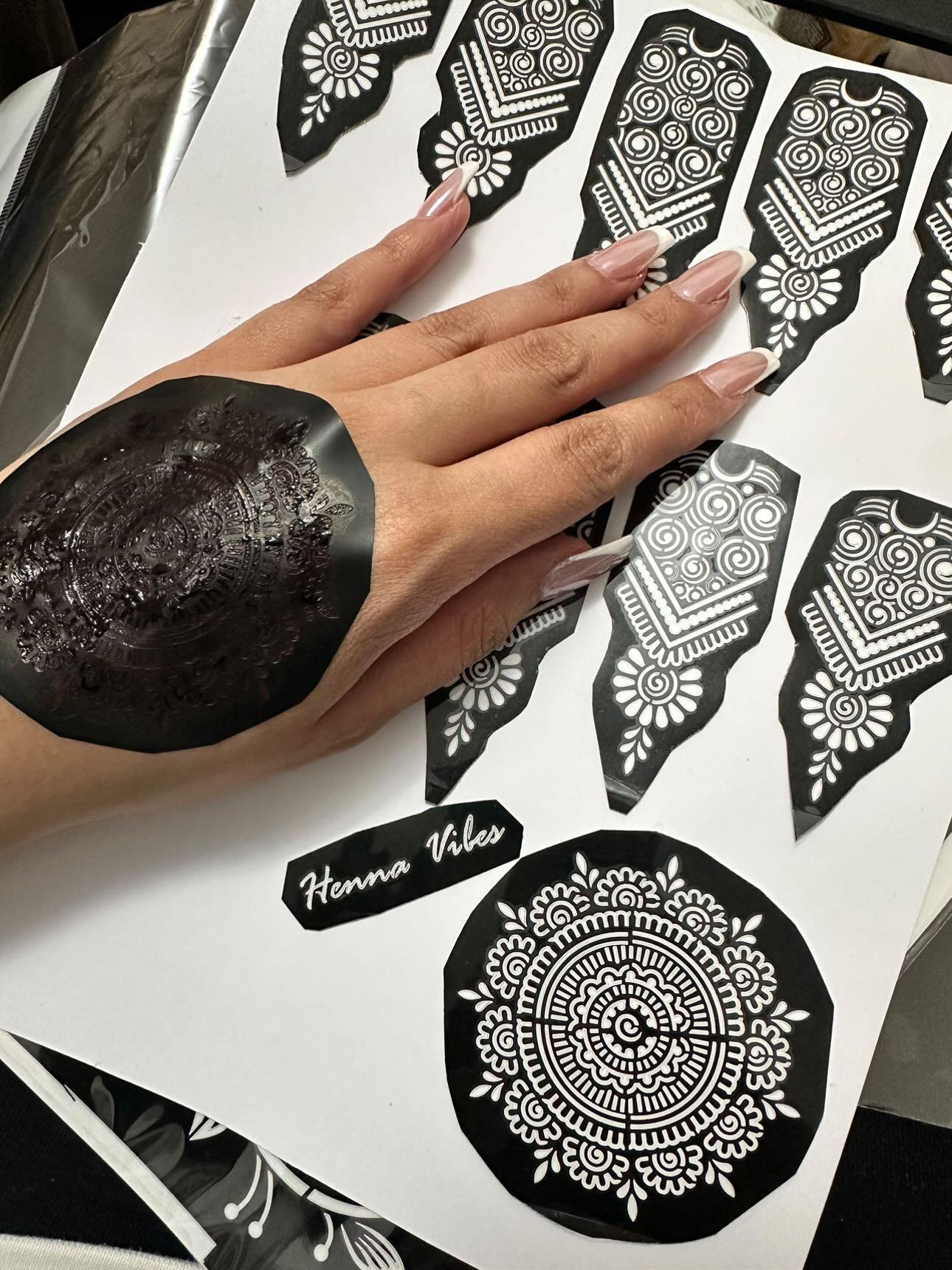 •For organic henna: carefully peel off stencils, or leave on the hand until it is ready to be washed off.